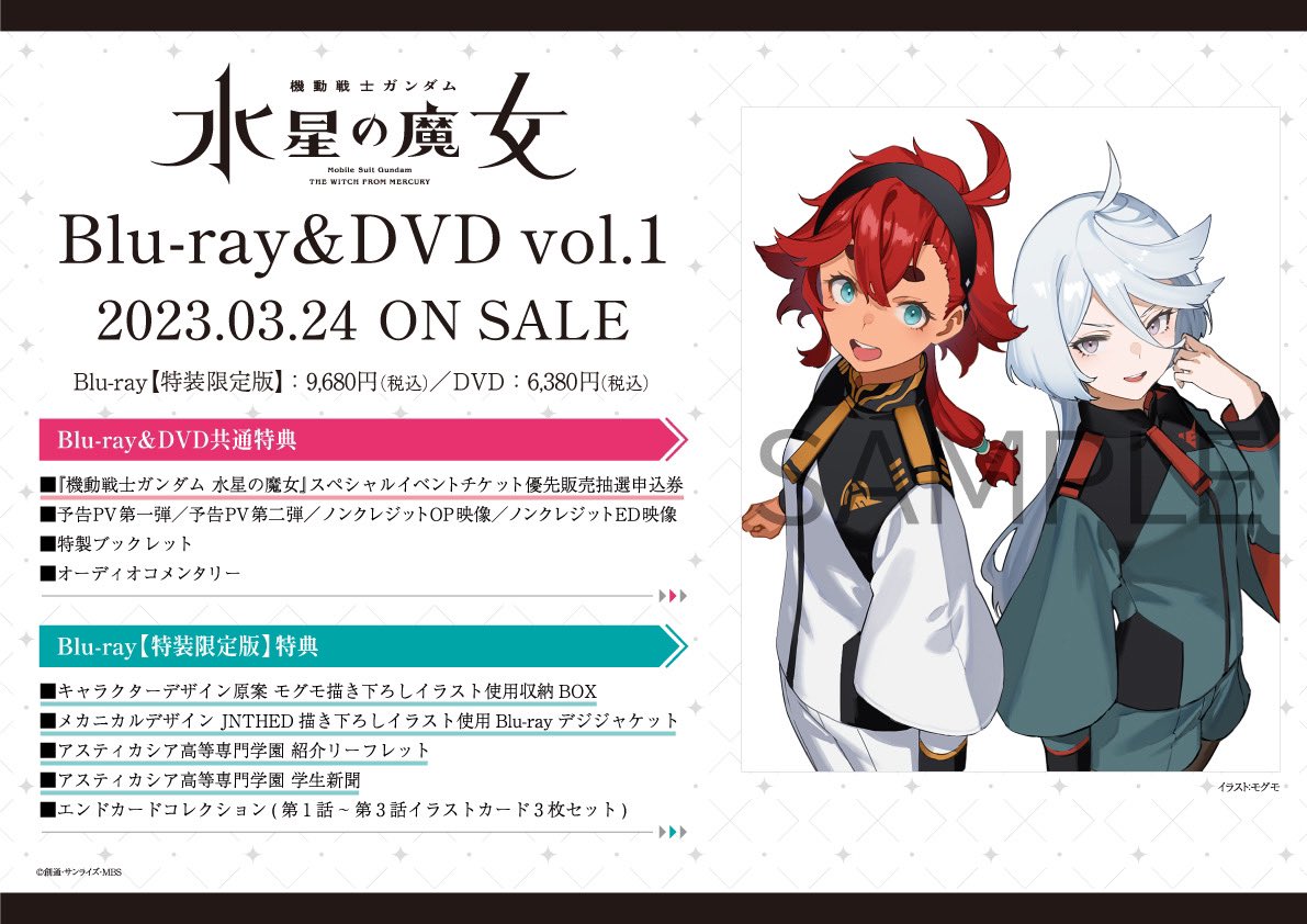 ![(早期予約特典:ティザービジュアル第二弾使用 A3ポスター付)【Amazon.co.jp限定】機動戦士ガンダム 水星の魔女 vol.1(特装限定版)(全巻購入特典:キャストトーク引換シリアルコード付)(vol.1~4連動購入特典:描き下ろしイラスト(ガンダム・エアリアル)使用 キャラファインマット(A4サイズ)引換シリアルコード付) [Blu-ray]](https://m.media-amazon.com/images/I/51gsQaY1T7L._SL500_.jpg)
