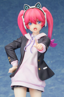 彼女の魅力である豊かな表情とポーズは、繊細かつアクティブな造形で表現。着用するパーカーやジャケットはもちろん、特徴的なヘッドフォンも素材感や細部の形状まで丁寧に作り込まれている。