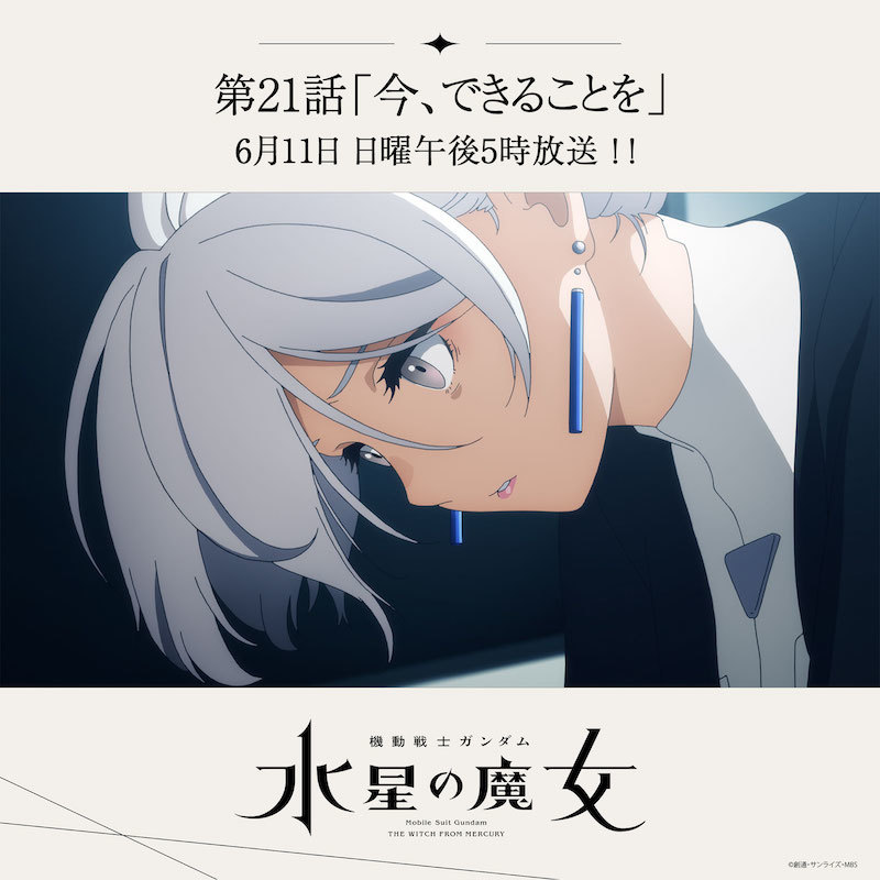 | 「機動戦士ガンダム 水星の魔女」第21話「今、できることを」本日6月11日17時放送! TVアニメ「機動戦士ガンダム 水星の魔女」第21話「今、できることを」が、本日6月11日17時よりMBS/TBS系全国28局ネットにて放送される。 (出典:Impress Watch) |