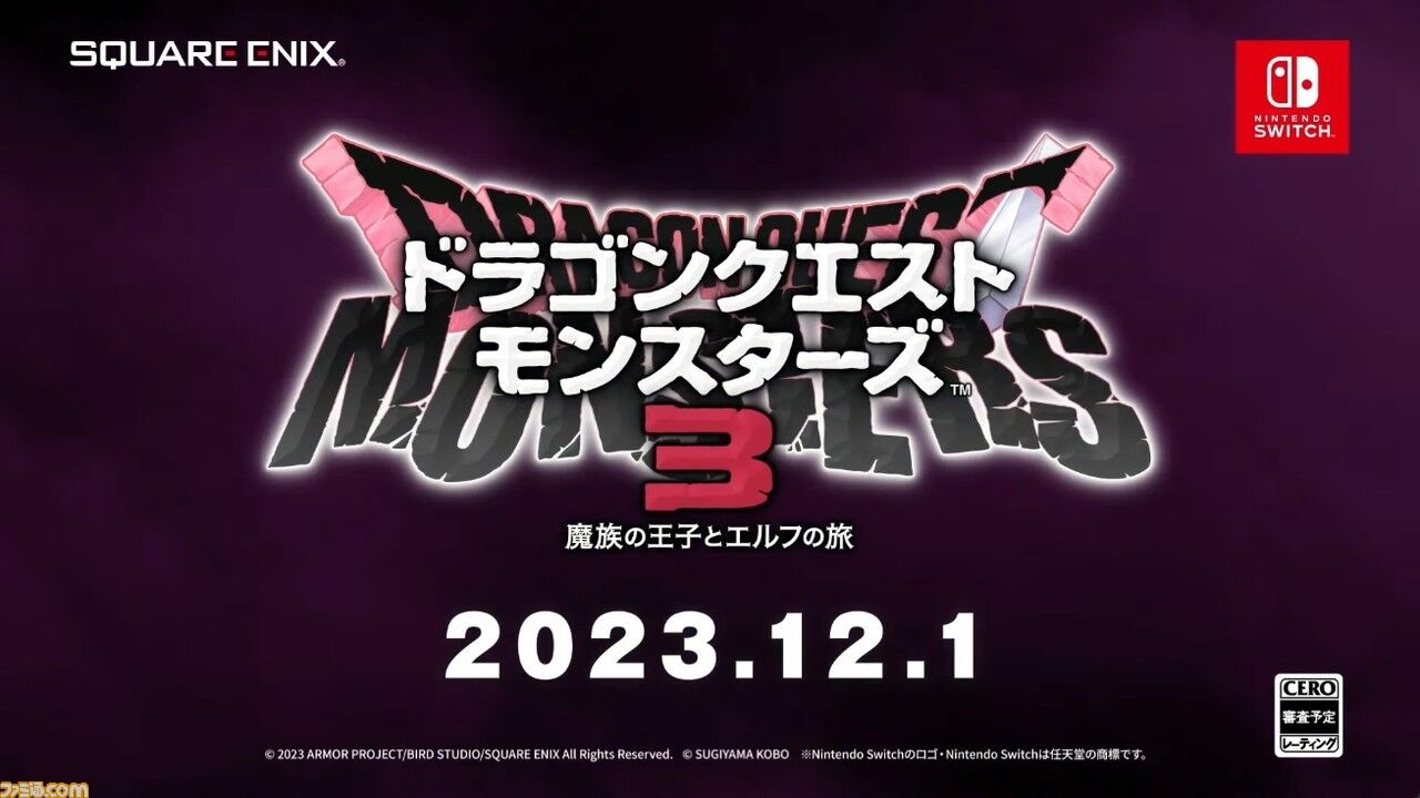 2023年6月21日23時から配信された、任天堂の新作情報番組“Nintendo Direct 2023.6.21”(ニンテンドーダイレクト/ニンダイ)。本イベントにて、Nintendo Switch『ドラゴンクエストモンスターズ3 魔族の王子とエルフの旅』が発表された。発売日は12月1日予定で、主人公は『ドラゴンクエスト4』のピサロだ。